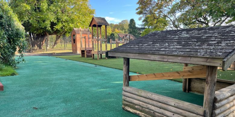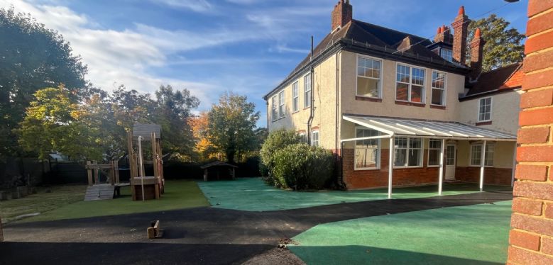 Our Sunbury school is in Sunbury-on-Thames, at TW16 6QE. The School opened in September 2023 and has an initial capacity of up to 18 pupils on-site. The front of the school is shown above; and the field to the rear is shown below.